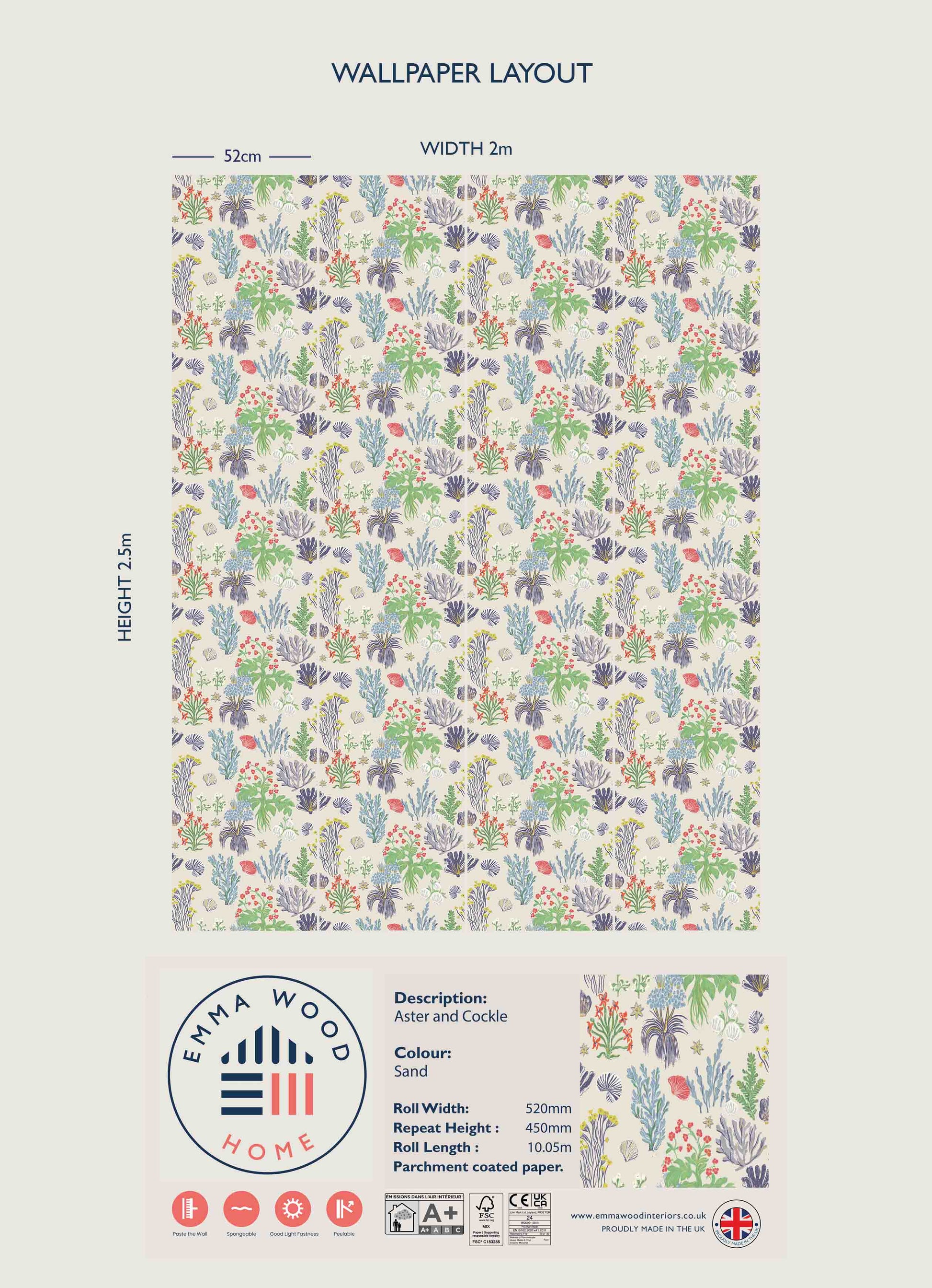 The primary brights of the Aster and Cockle design evoke a fresh, breezy feel to prints which reference seashells, fauna and seaweed. The whimsy of Aster and Cockle is inspired by vintage print designs of a bygone era.