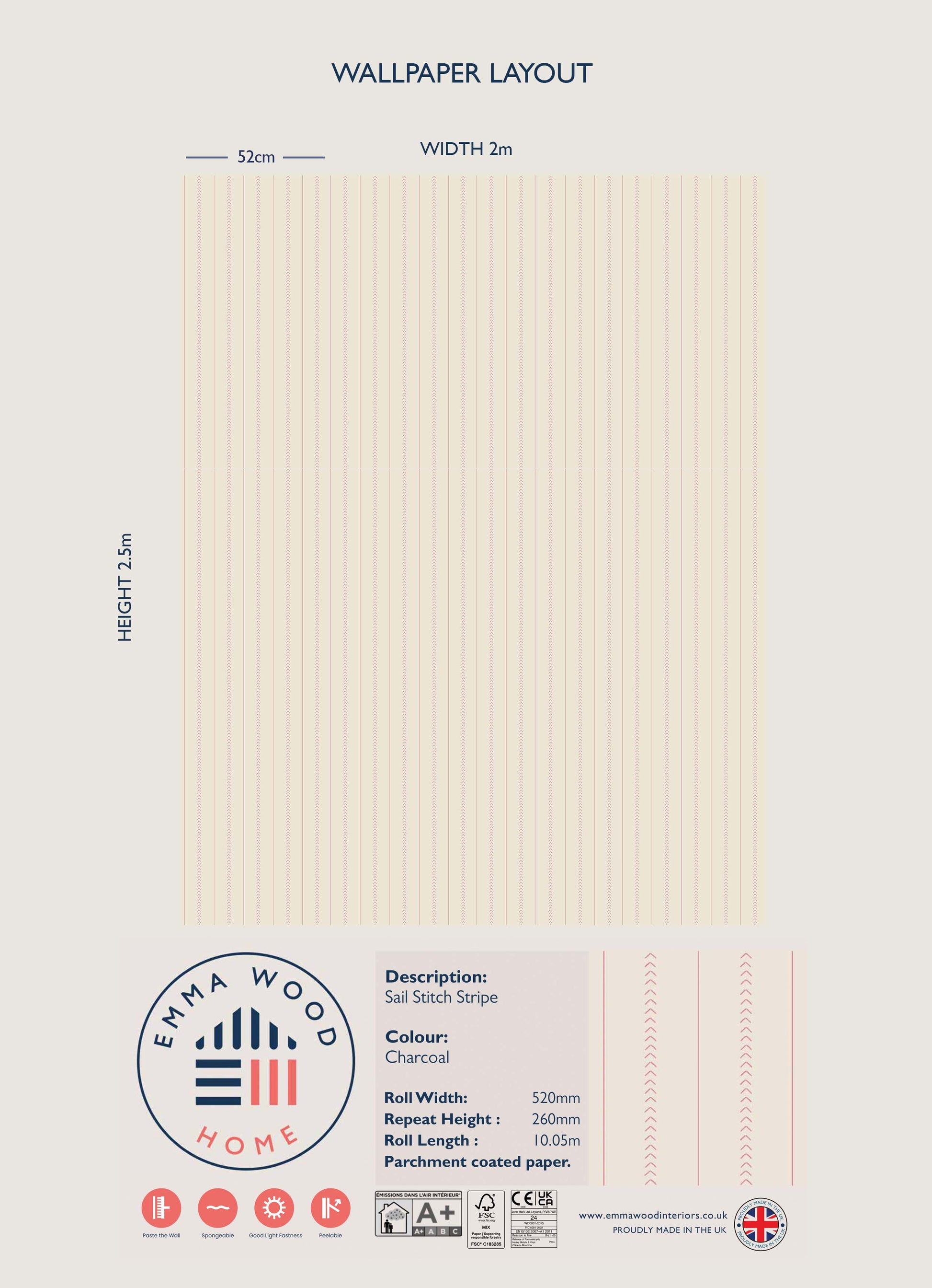 The Sail Stitch print was inspired by a gentle vintage ticking stripe. The broken edge design gives the impression of hand stitching and is a softer version of a stripe.