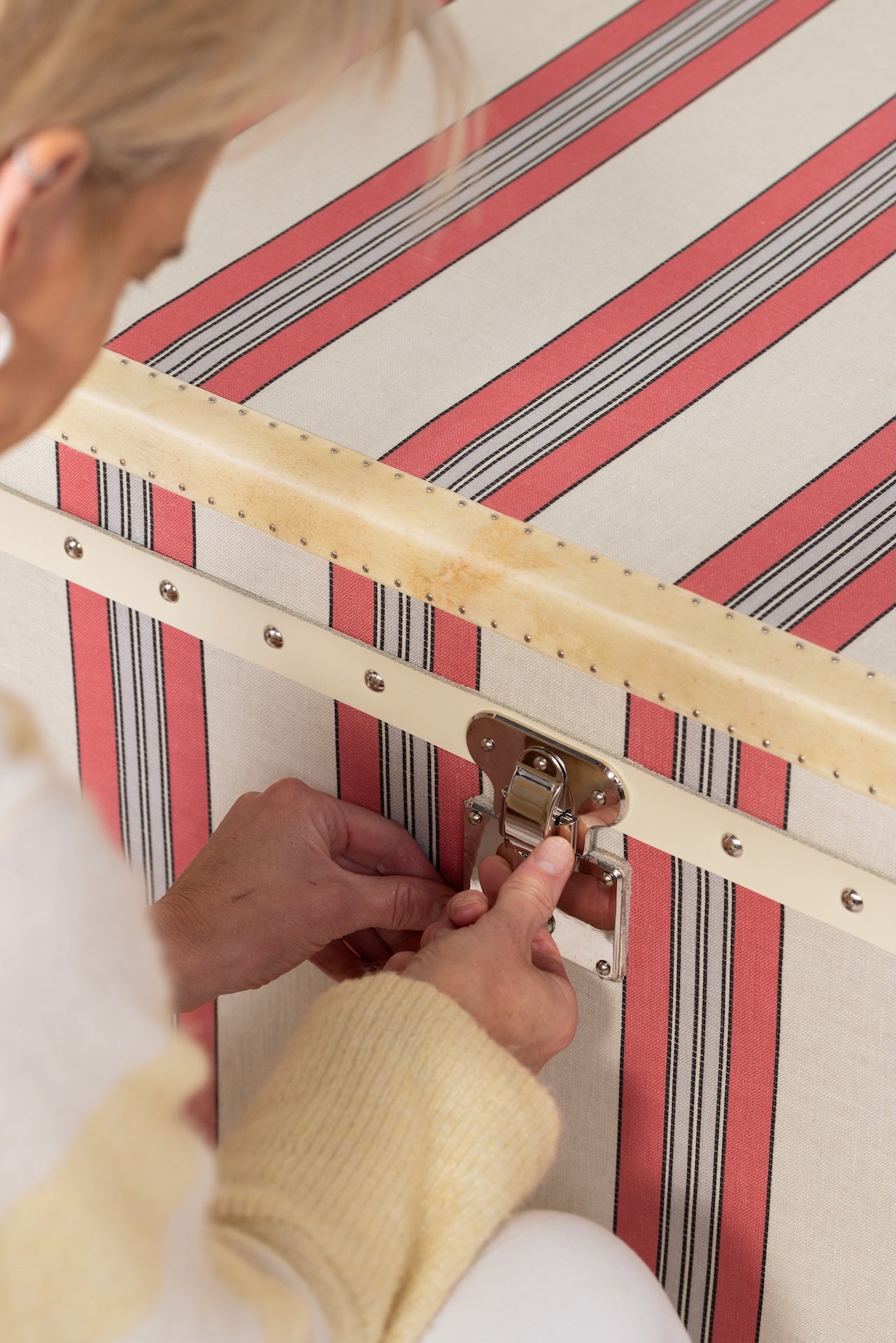 Emma has designed two sizes of trunk, this being the perfect coffee table size. The trunks however can be made to any size or shape so please contact the studio if you have something specific in mind.