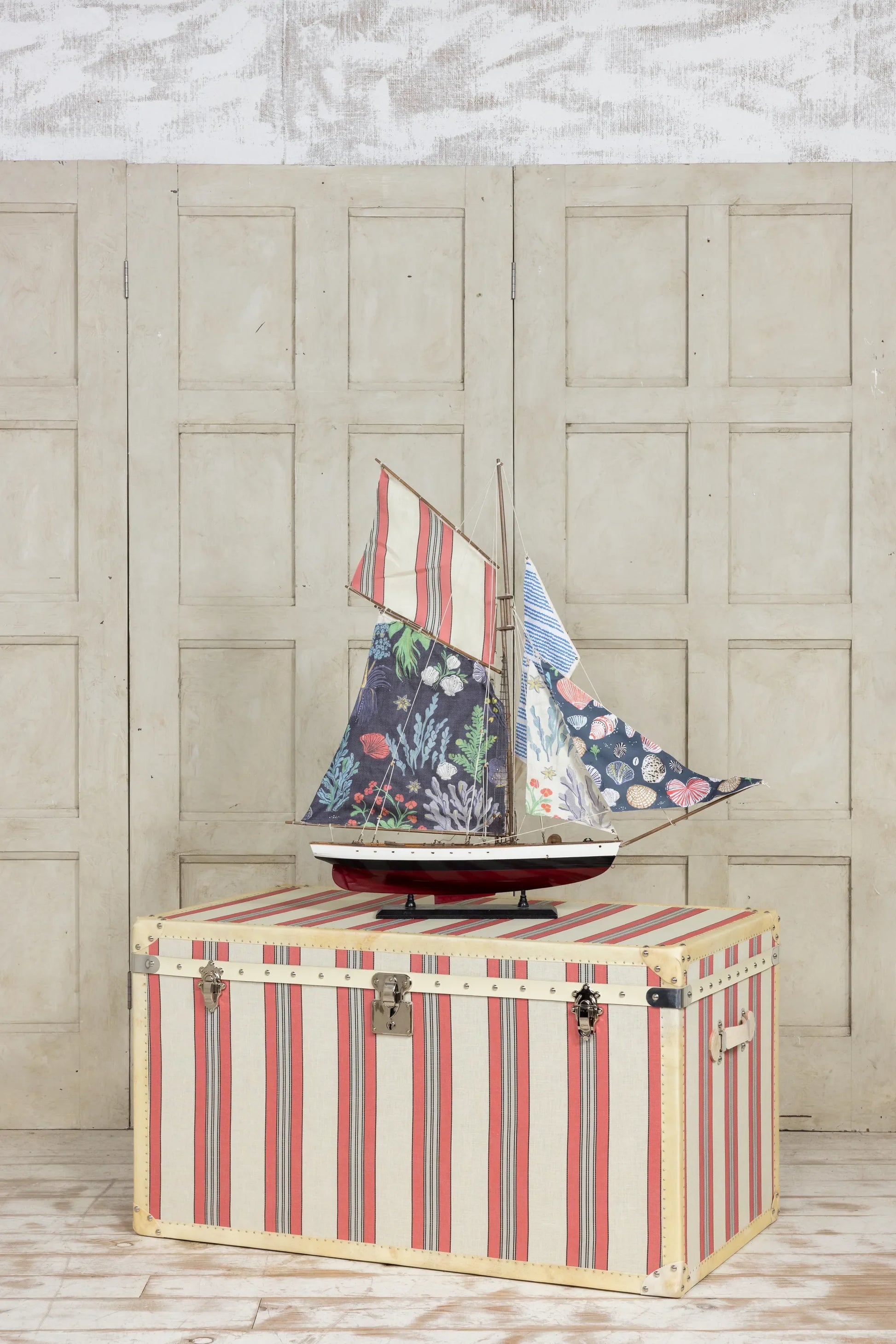 These stunning handmade trunks are exclusive to Emma Wood Home. Build from a solid wood carcas and covered in any Emma Wood fabric base, they are beautifully vellum edged with hand applied hardware and leather detailing. The interior is fully lined and exceptionally finished, all made in the UK.