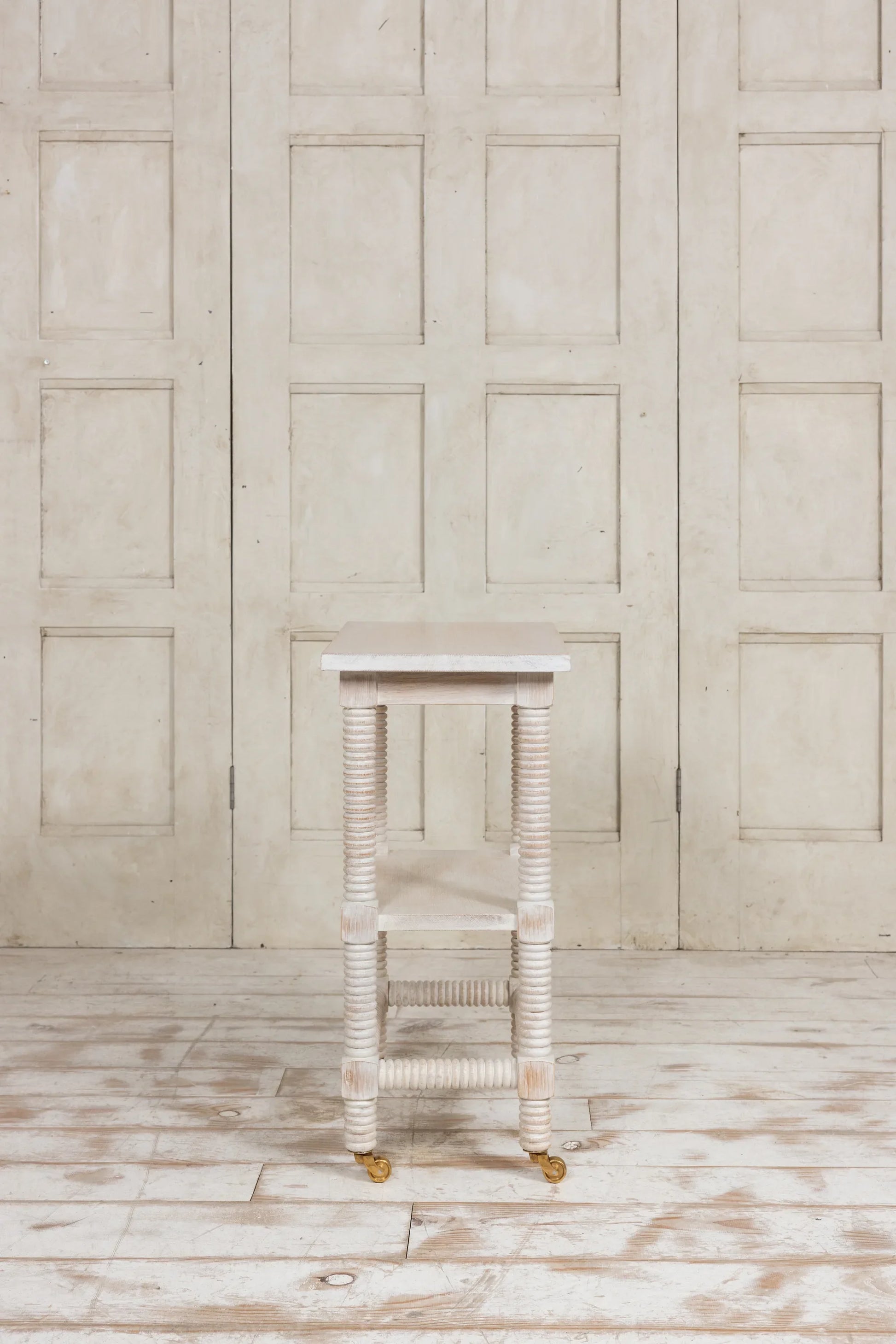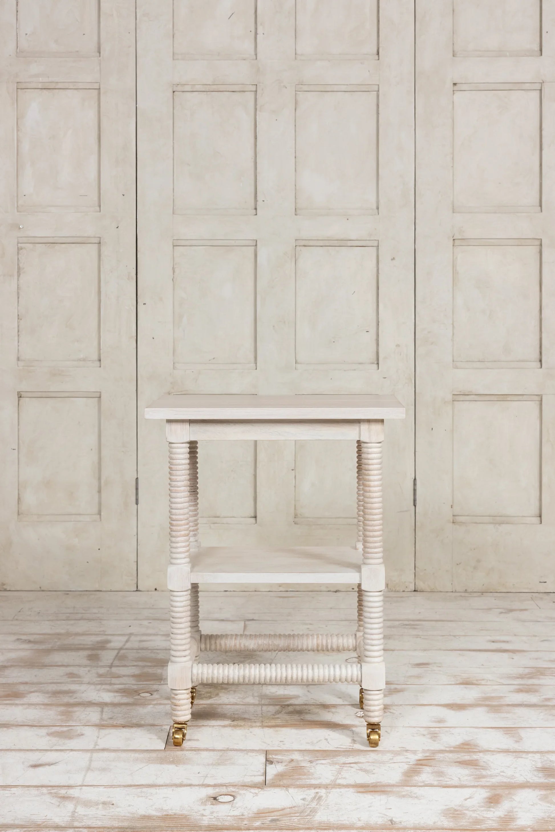 The rope twist side table features hand turned legs and cross rails. The leg detail is an original Emma Wood Design featuring her signature rope twist carved legs and antique brass traditional casters. Made from Oak available in dark or limed oak finish. The frame timbers are from approved mills that comply with FSC or PEFC rules.